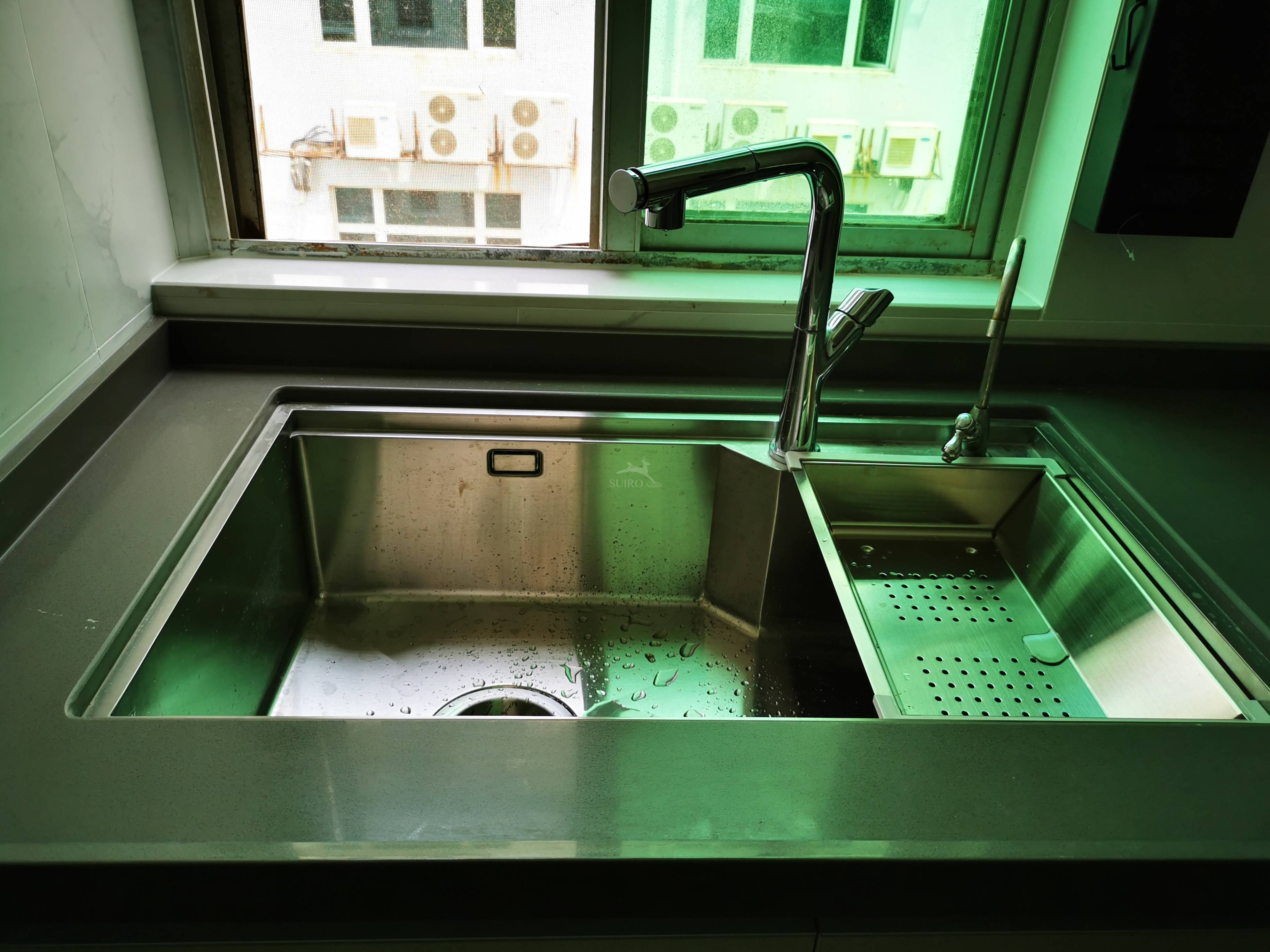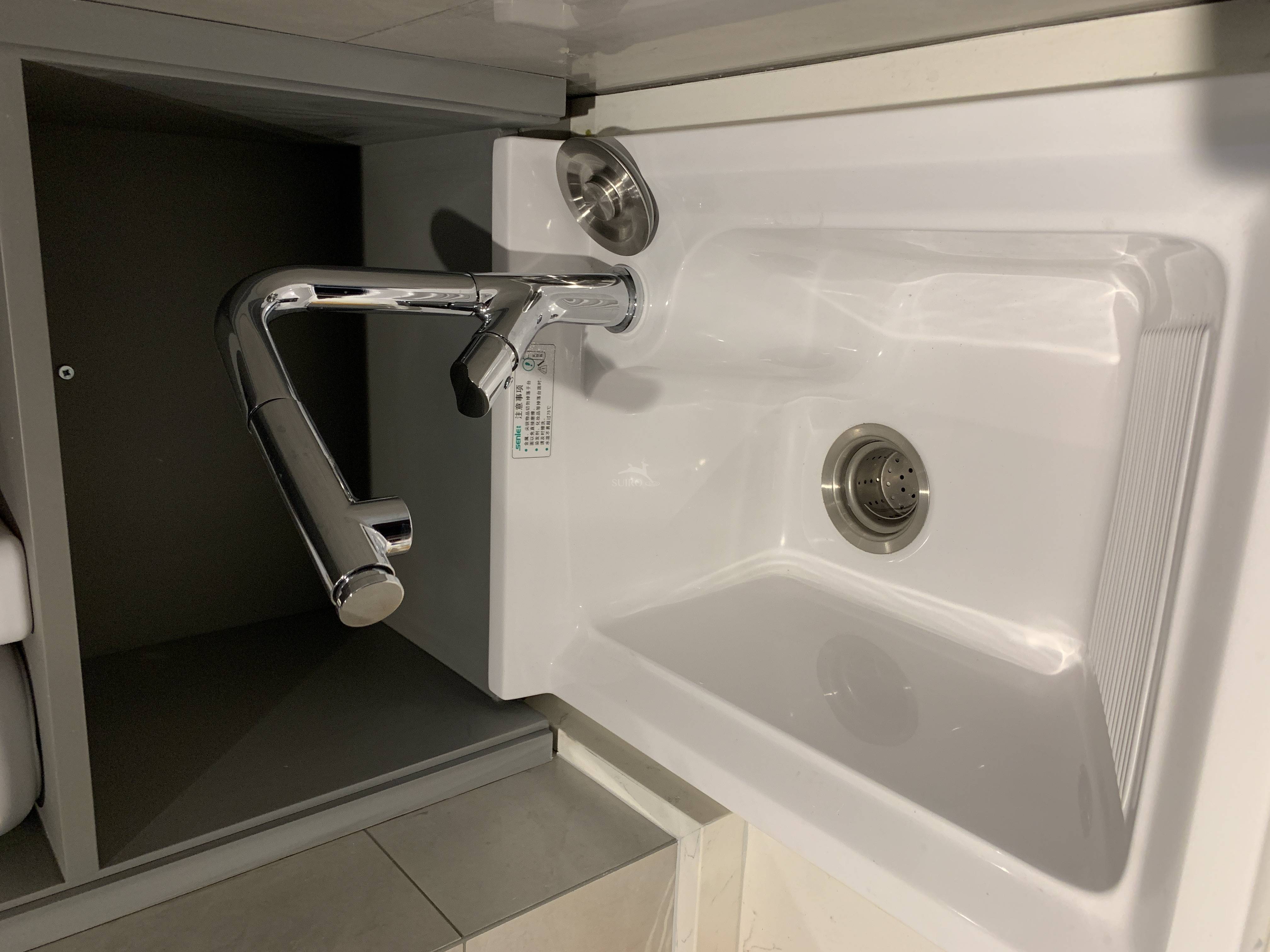 • 龙头不错,但是配这个水槽显小了一点,还好可以抽拉,洗水槽各角落没有问题。