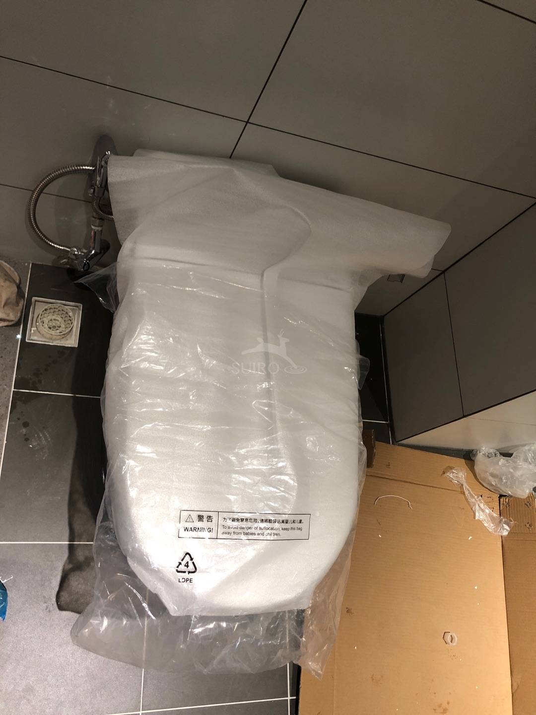 那个用来打胶的纸尺寸有点大,马桶第一次没装上,师傅又辛苦把胶擦了,把纸剪小重新打胶,真的蛮辛苦的,马桶很好看,师傅很负责,希望水鹿能改进这些细微的不足,让自己走的更远。