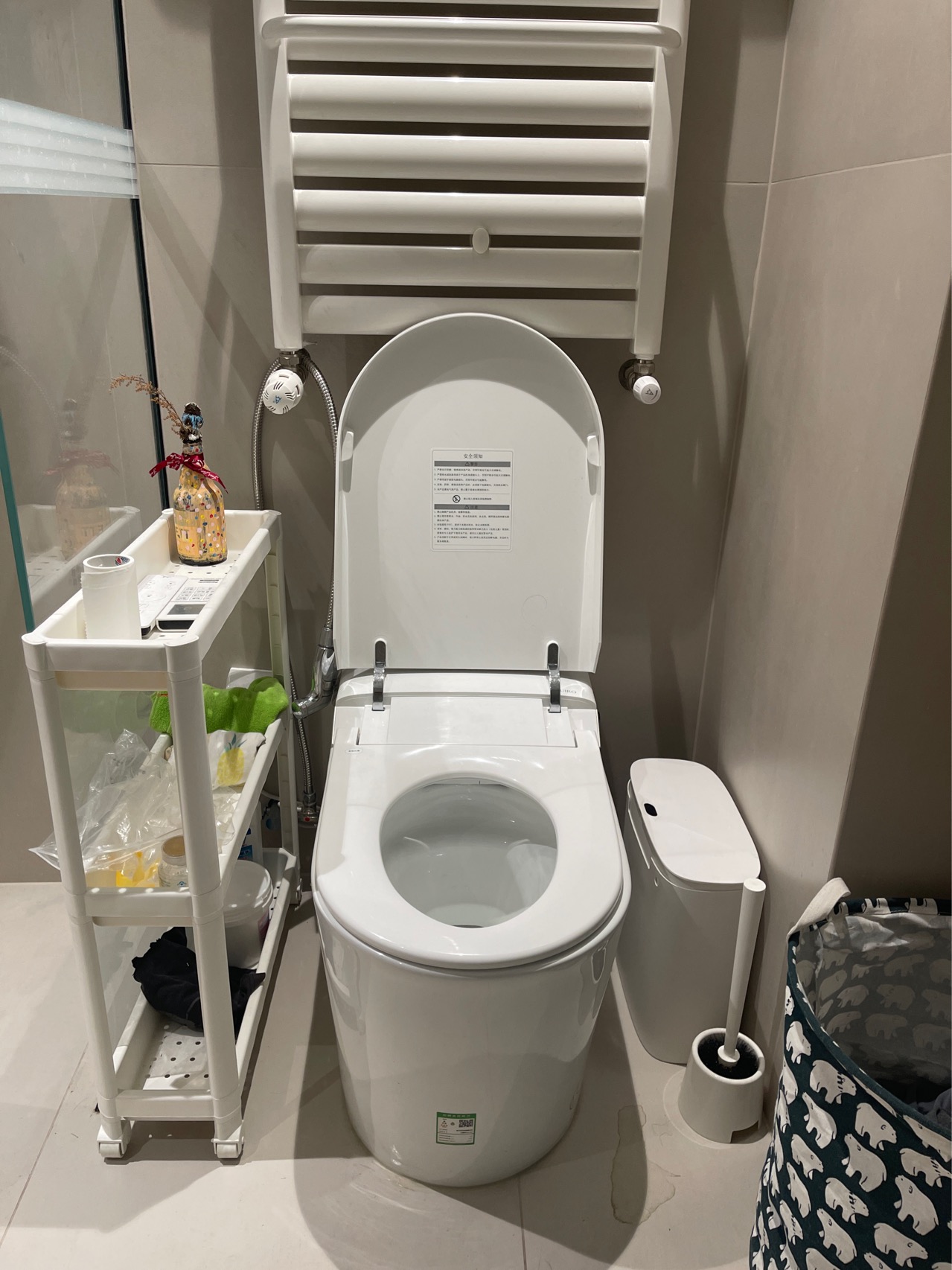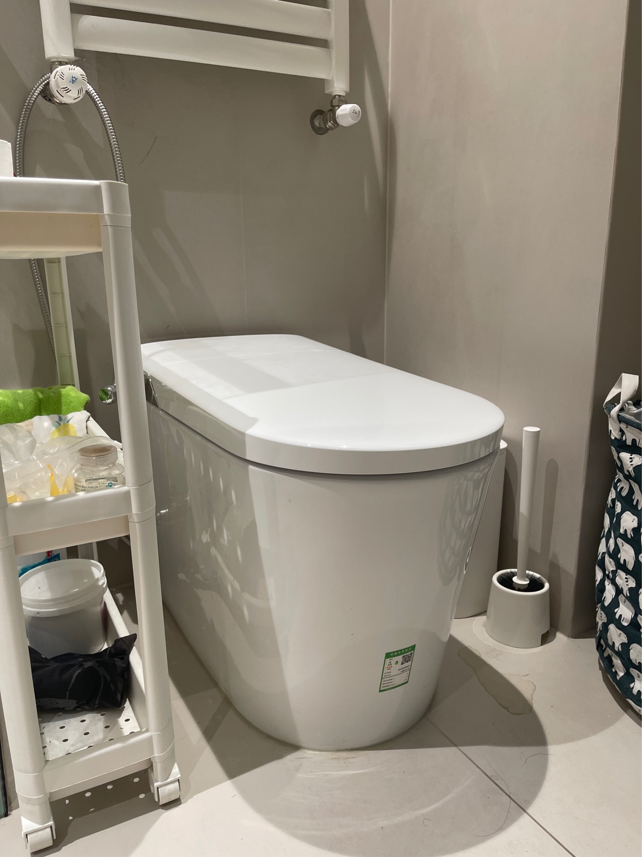 追加评论:马桶造型漂亮,外观大气,做工精细,釉面质量好,非常好刷,不易挂污。使用了接近一年,总体非常满意,功能完全满足我家的需求。臀洗力度合适,对比某些品牌,好太多了。便圈和盖子也非常好打理,没有死角。停电也可以冲马桶。已推荐给好多朋友。