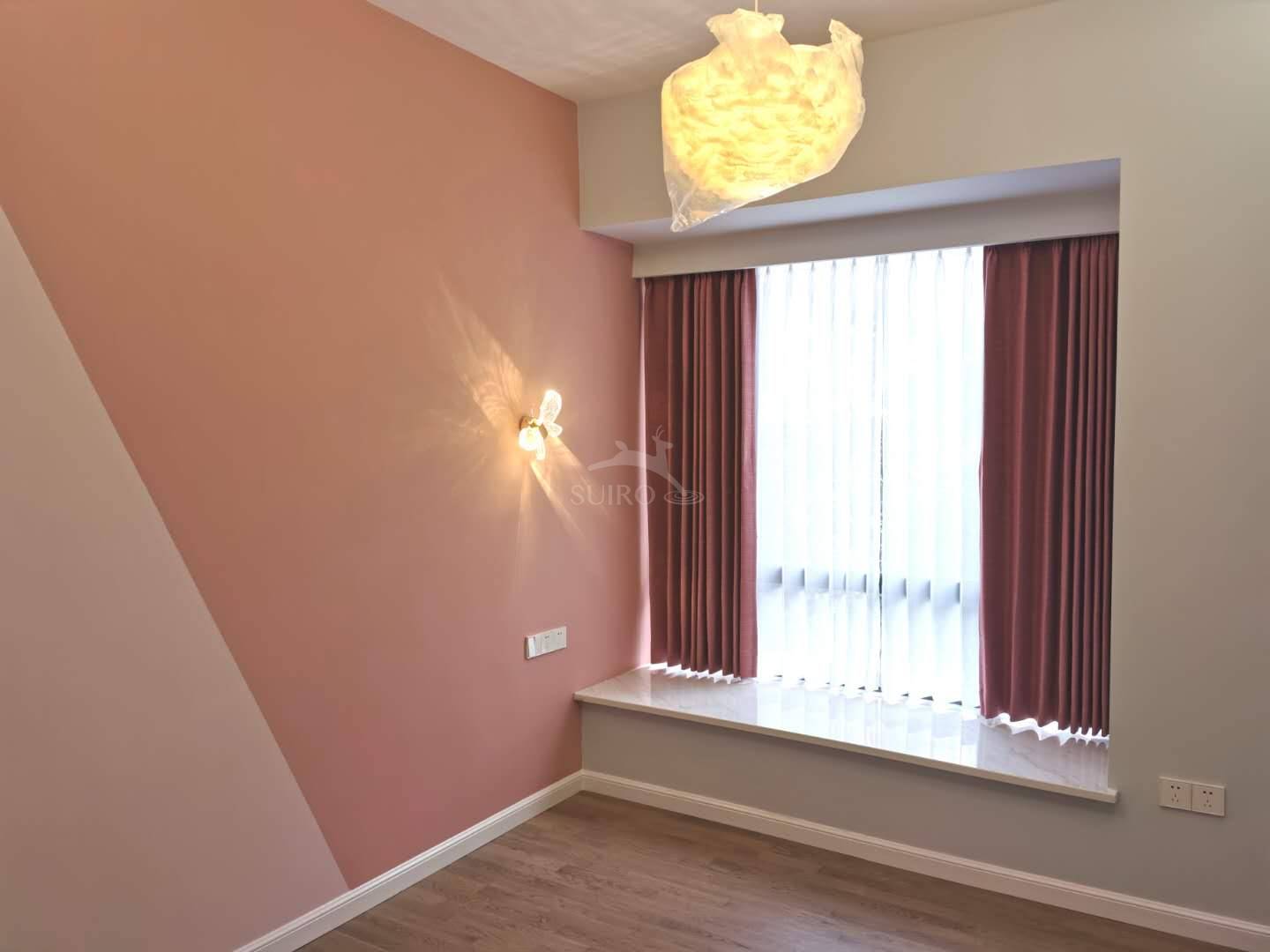 为了体现出窗帘和墙面的层次,不影响室内采光的前提下,可以让窗帘比墙面颜色深一点,就像给窗户“画眼线”一样,可以让窗户显得更大。