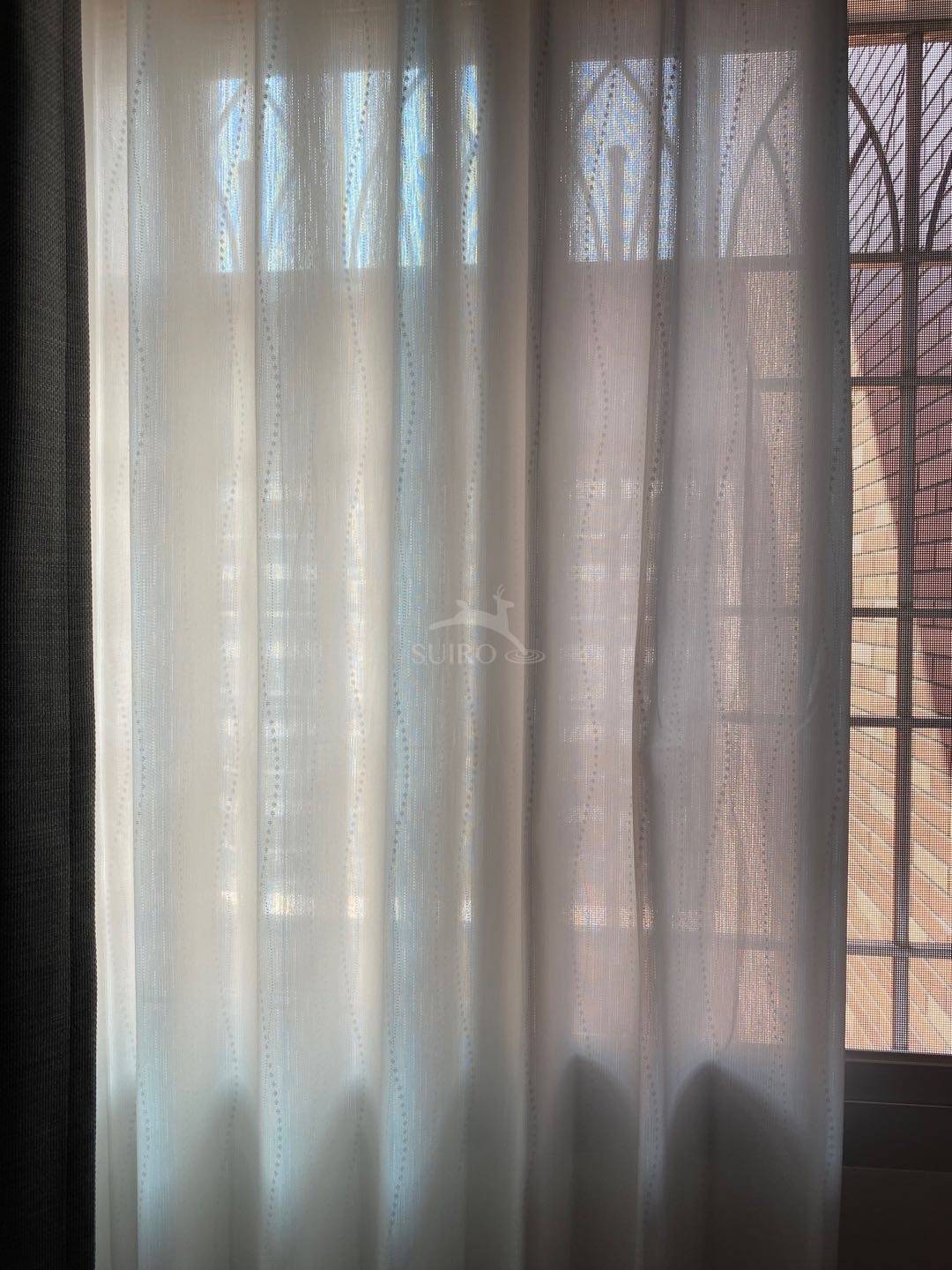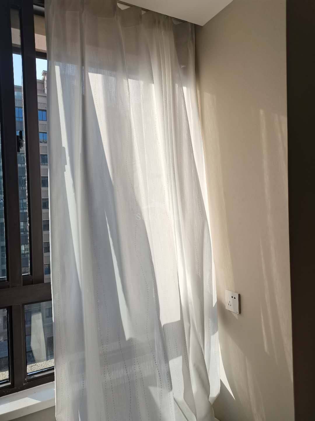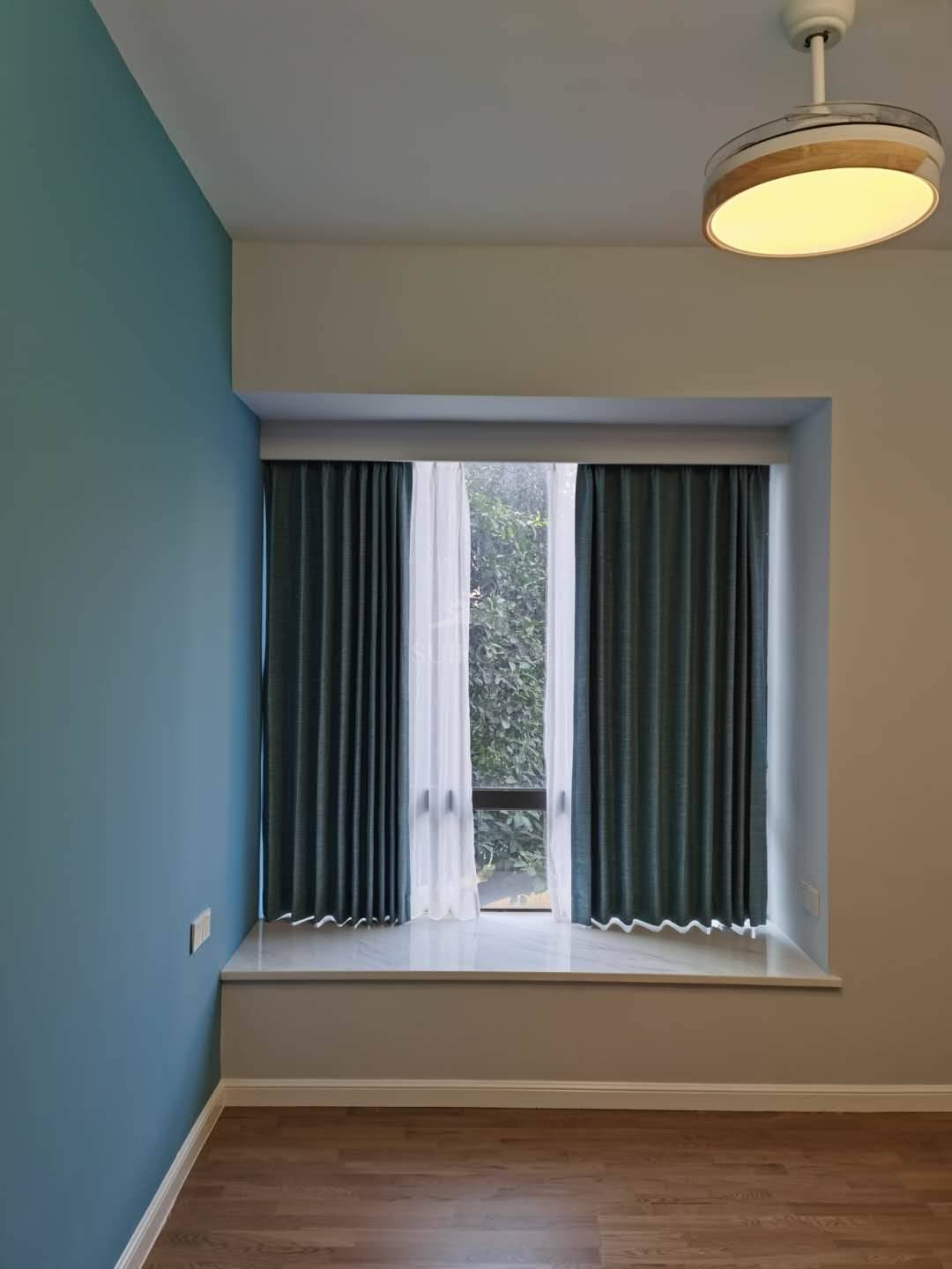 SF016浅蓝色+SF032纯白纱,说实话真的美爆了!而且装窗帘的师傅手速特别快,chua chua chua就装好了,顺利到让人快乐~