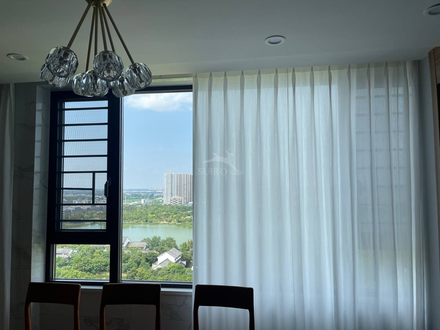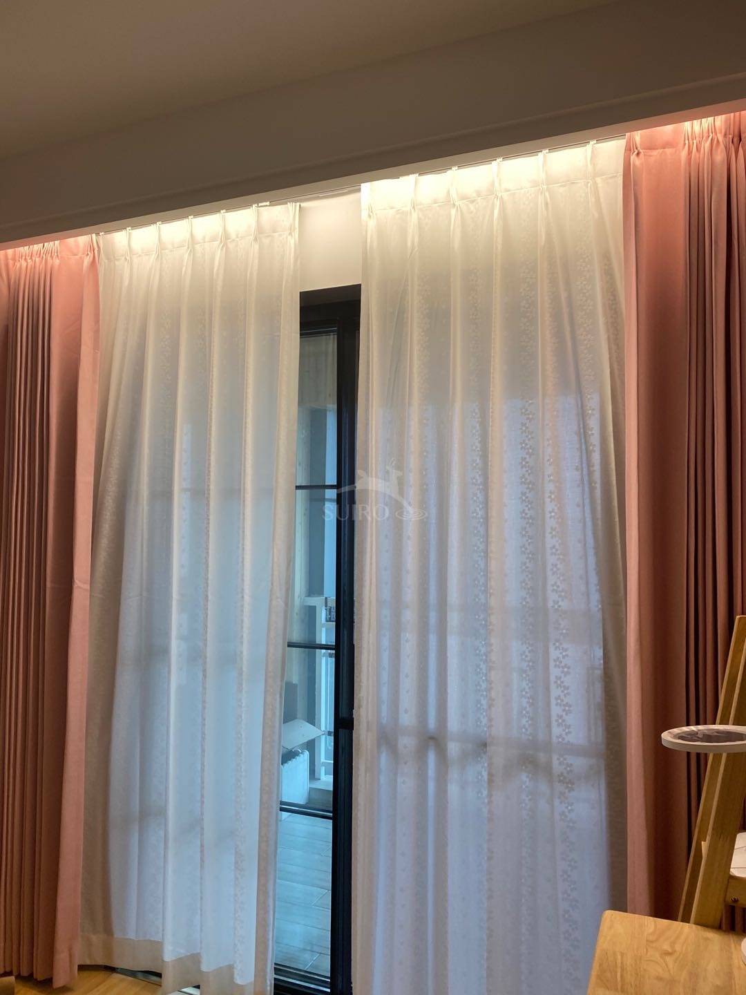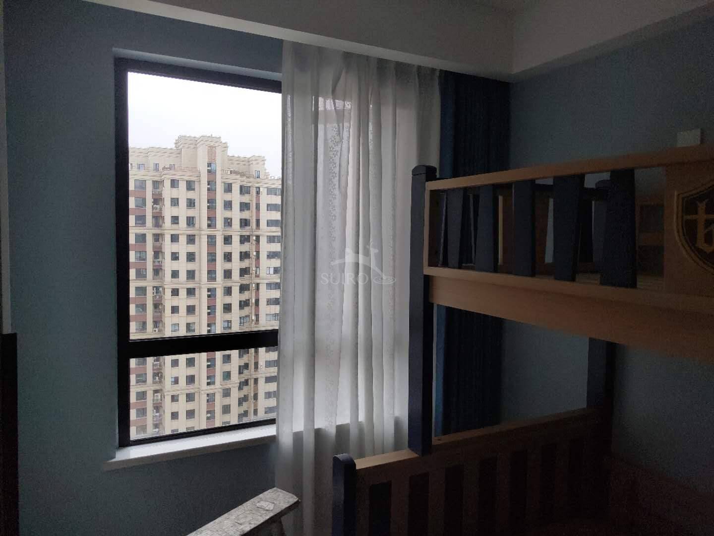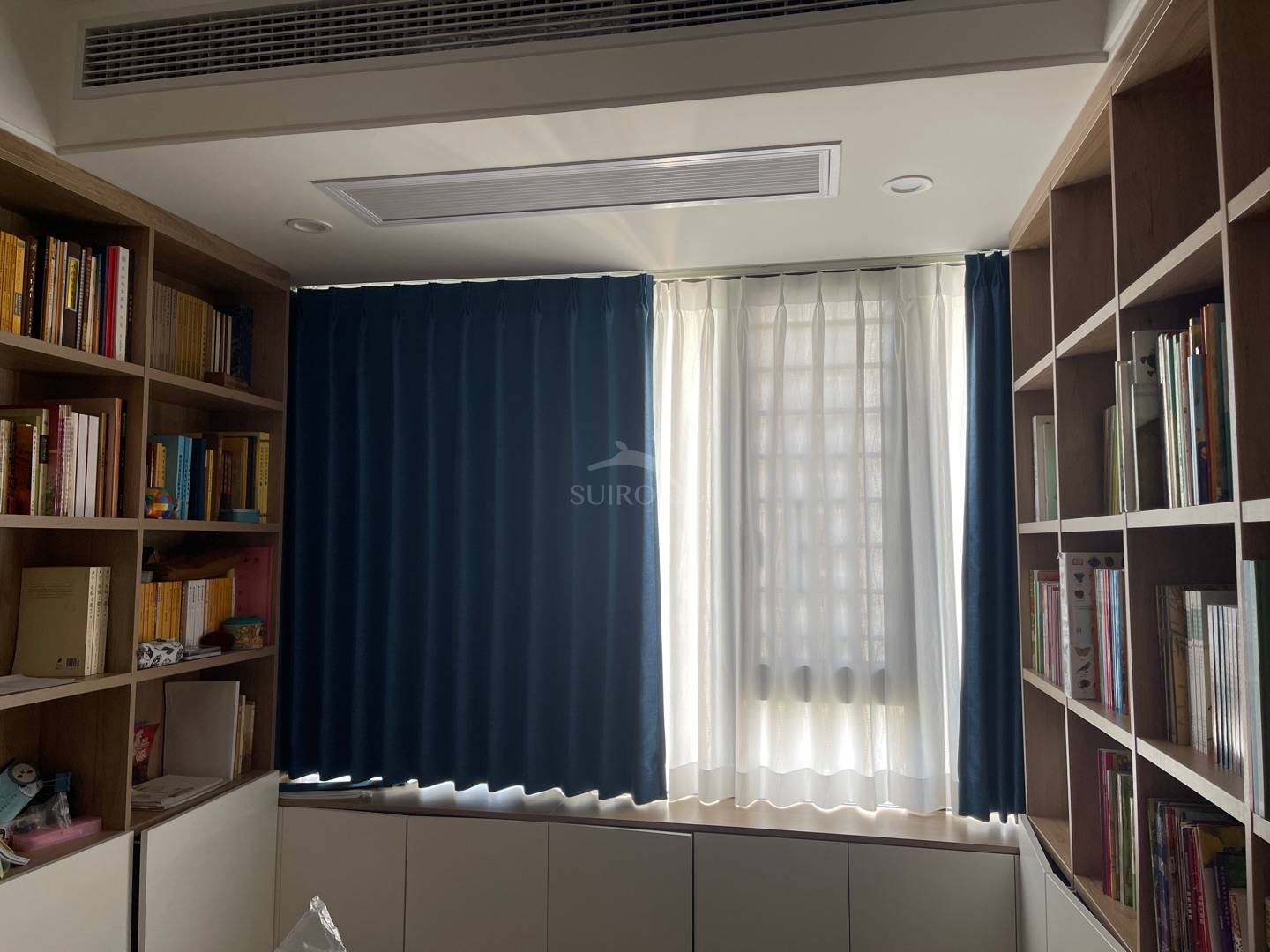 SF016浅蓝色+SF032纯白纱,说实话真的美爆了!而且装窗帘的师傅手速特别快,chua chua chua就装好了,顺利到让人快乐~