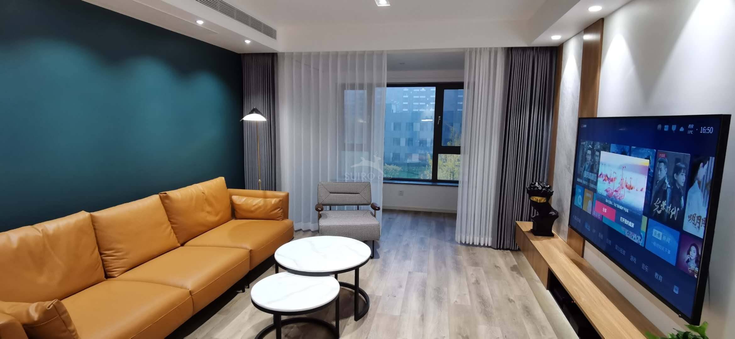 3.窗帘色调跟着家具饰品走。如果家具已经置备齐全,各种软装饰品也买好了,让窗帘颜色和饰品颜色一致是个更好的选择。到底跟着什么饰品,就要看房间里有哪些亮色占比比较大了。(可以跟地毯,沙发,床单等同个色调)