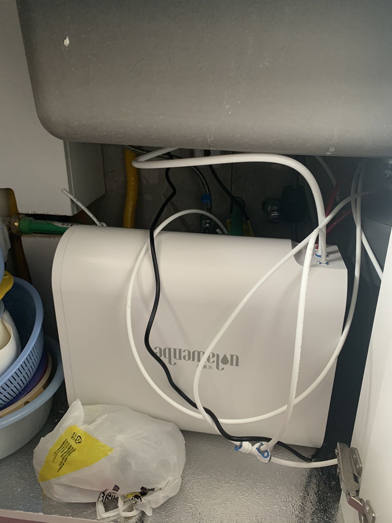 追加评论:水斗下面有个垃圾处理器,所以净水器只能这么装了,不过不影响使用。