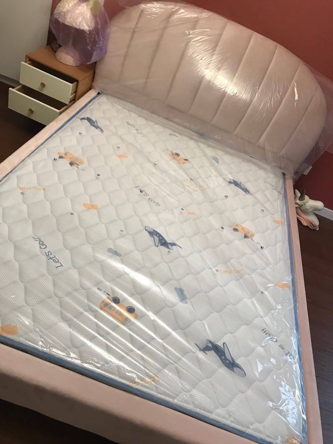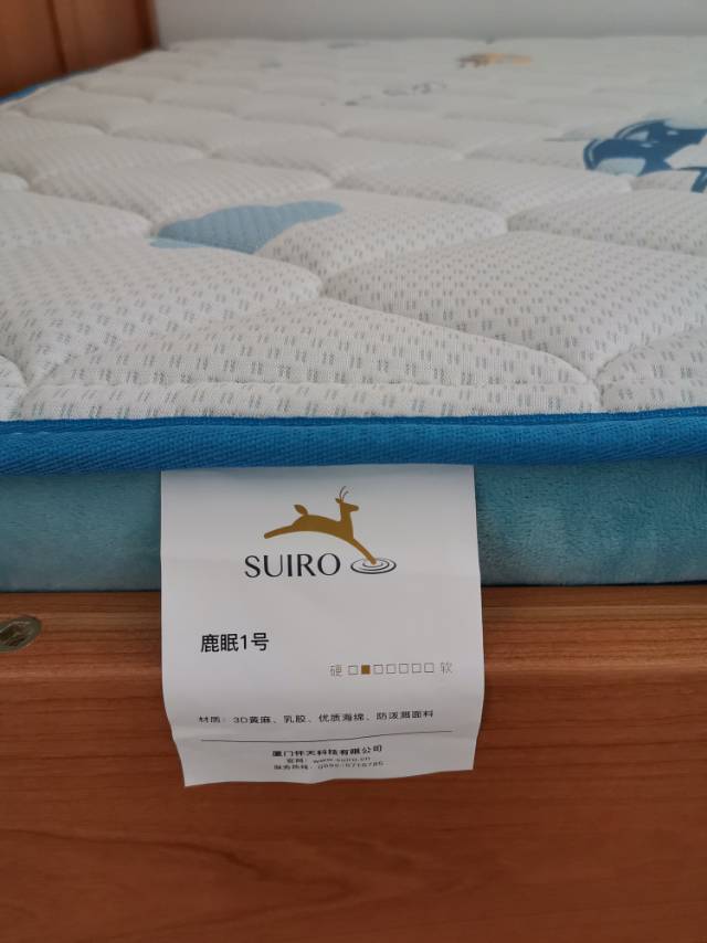 鹿眠一号床垫,收货时恰巧赶上下雨天,看到送货师傅车上的床垫我很放心的,外包装很用心,用的防水外包装纸,里面还有一层塑料袋。打来包装没有任何气味,绝对0甲醛,床垫表面的布料质地很赞??,中间部分用的绒的蓝色布,做工很精细,这种床垫在实体店最少2千以上,需要购买床垫的亲,大可放心购买,绝对让你满意