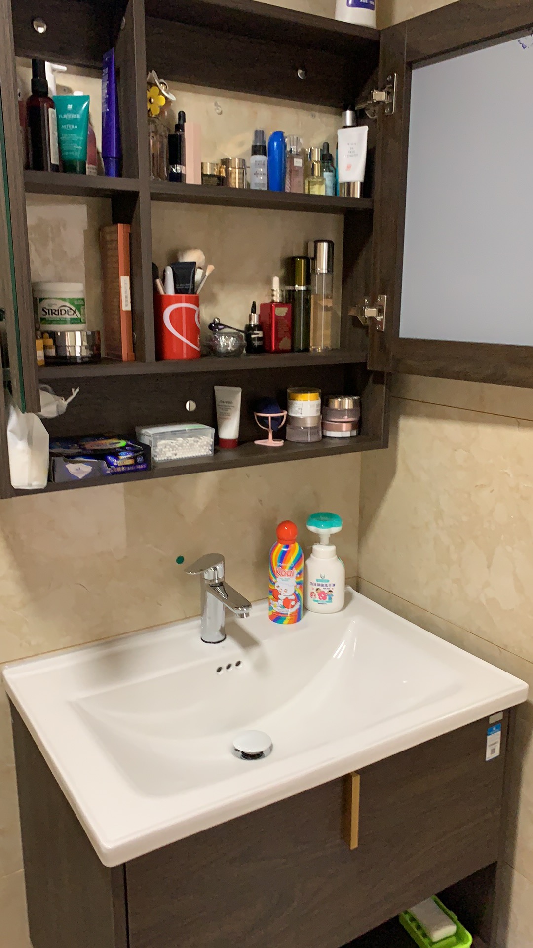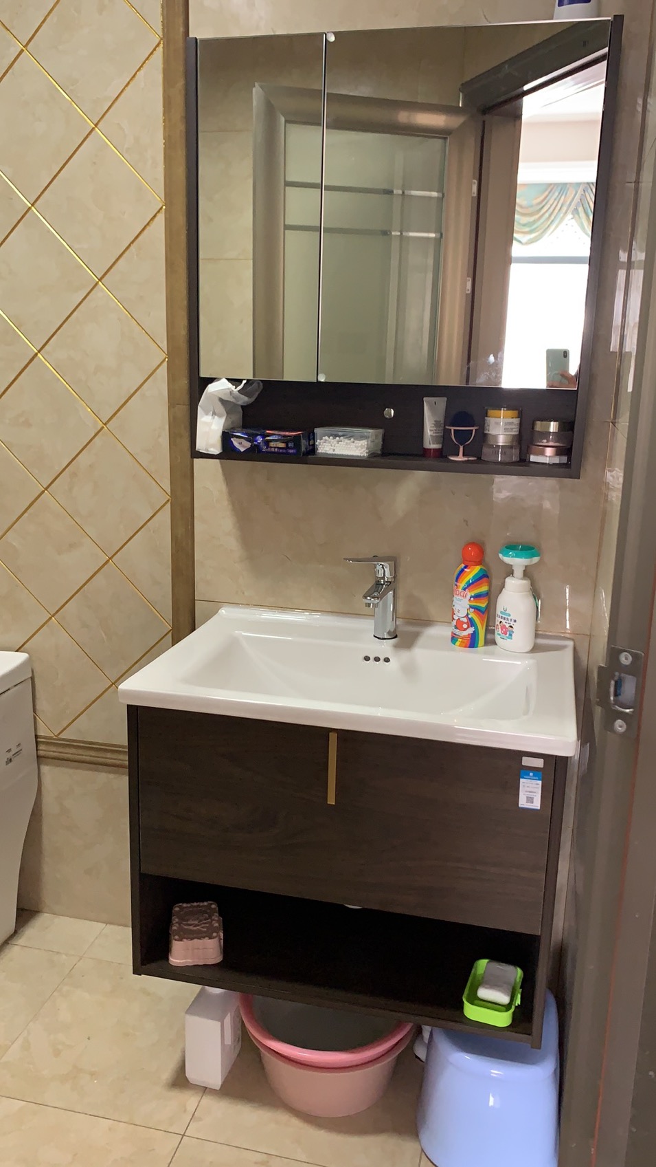 把原来落地老式浴室柜换了,原来浴室柜基本放不了什么东西,现在利用率大大提升了,双开镜,一边拿东西照另一边,特别方便,做工质感都是外面三四千的差不多,推荐