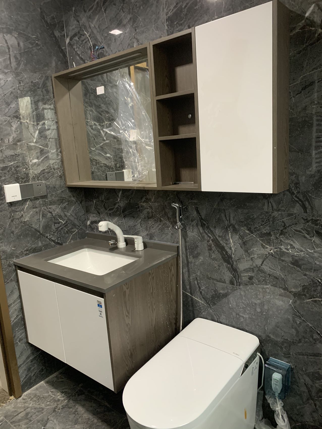 浴室柜很有质感,师傅赞不绝口~不愧是水鹿家热销款~