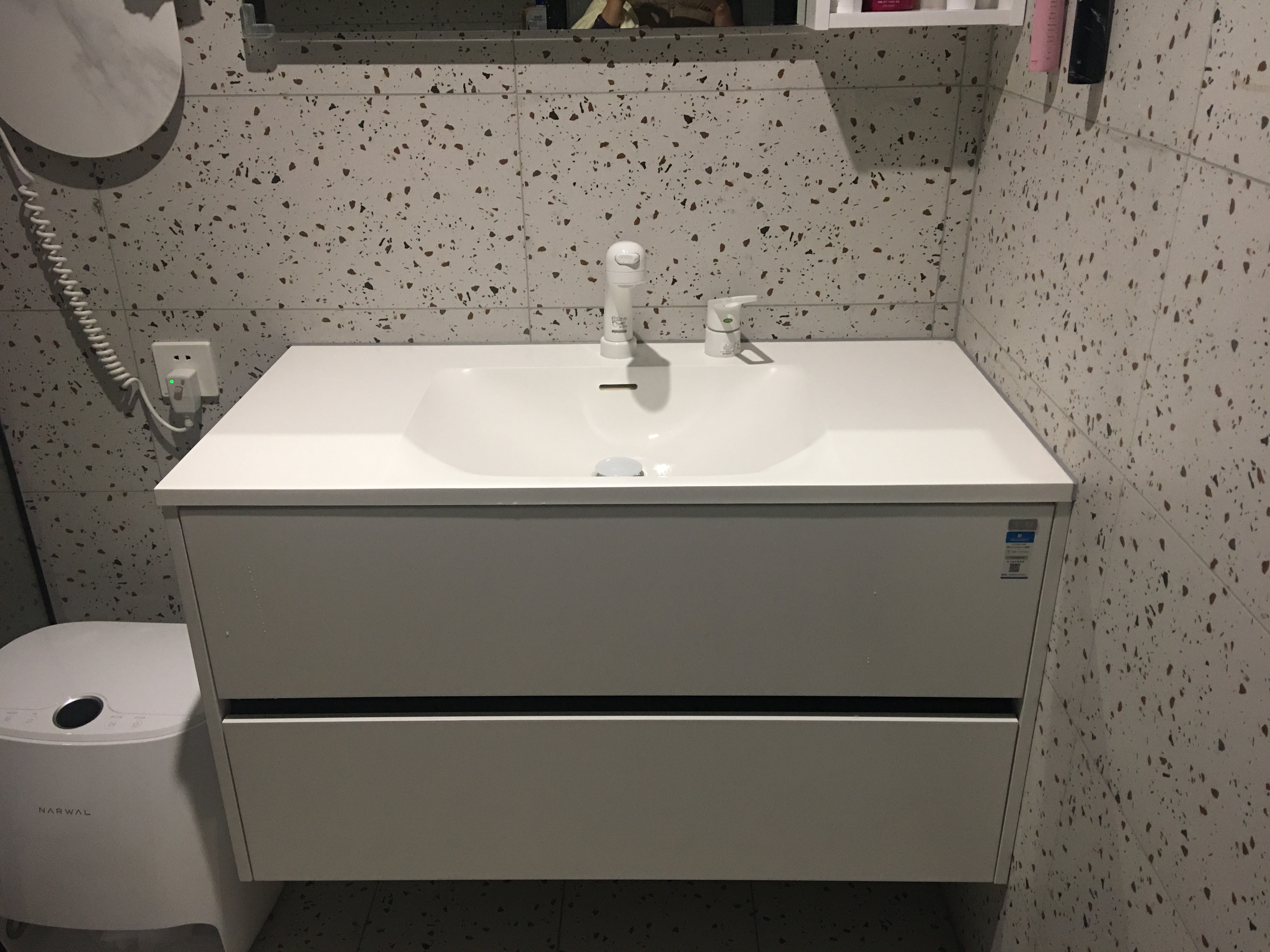 一眼看中枫丹白露,一体台盆很好清洁,配小双颜值高,实物比图片美太多