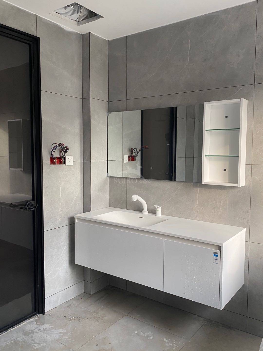 浴室柜成品不可定制不可改色,下单前咨询水星有无库存,无库存可以用定制款定制成原有的款式模样,柜体可改色,改结构,台面不可定制,成品交期申请发货后35天左右,定制45天,不含运费和安装,不含龙头和下水