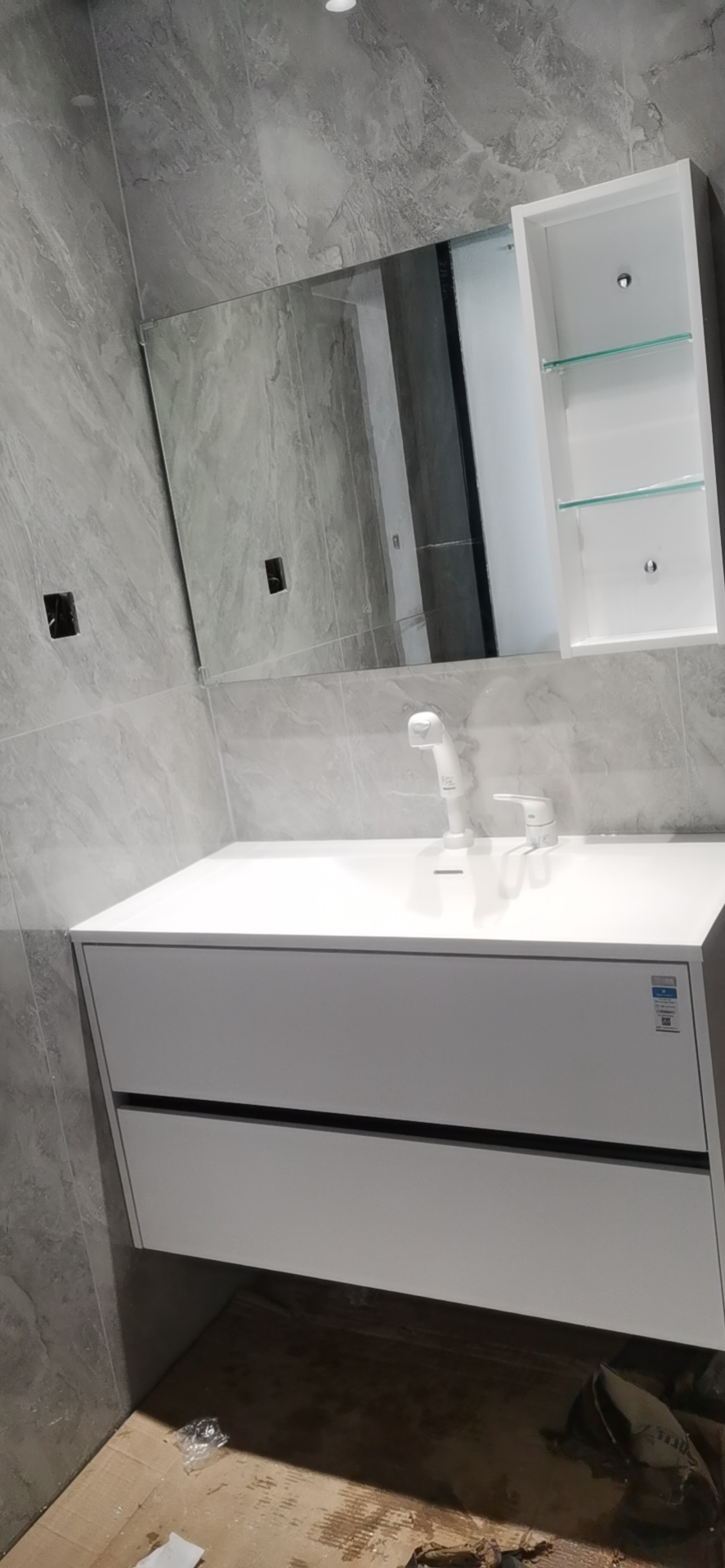 浴室柜成品不可定制不可改色,下单前咨询水星有无库存,无库存可以用定制款定制成原有的款式模样,柜体可改色,改结构,台面不可定制,成品交期申请发货后35天左右,定制45天,不含运费和安装,不含龙头和下水