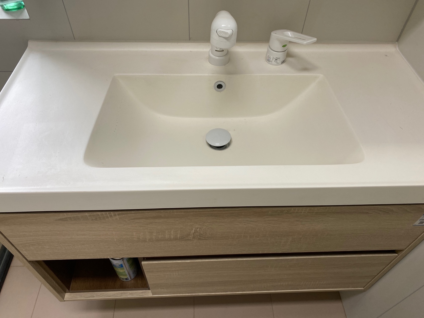 台面没有商家展示的那么白,人造石的,没有陶瓷的好用