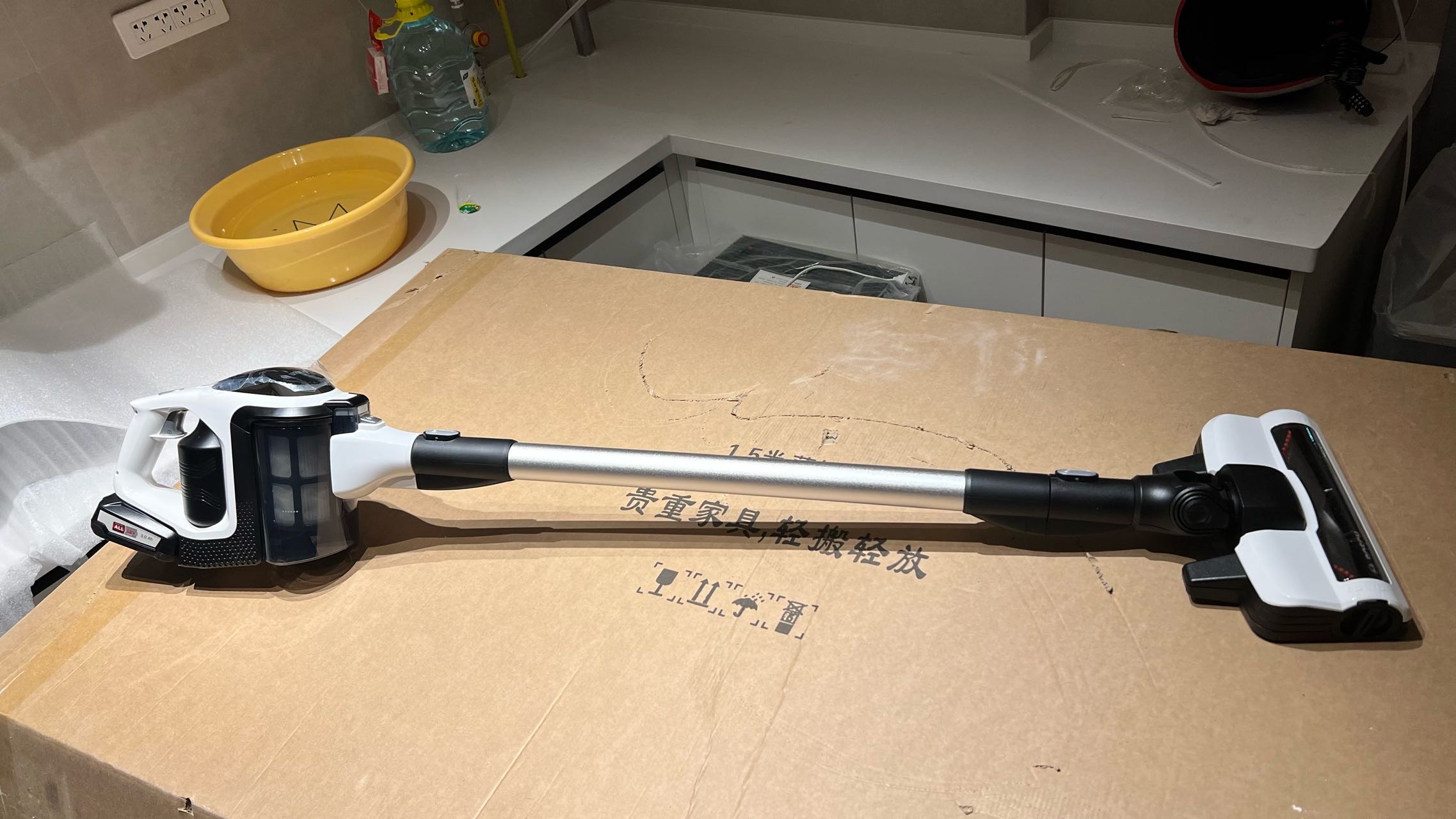 先来个全家福,吸尘器不是很重,操作简单,很容易上手,吸力还不错,满足我家需求。